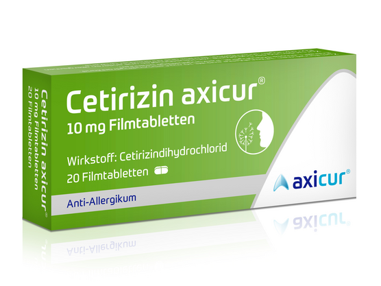 Wirkstoff: Cetirizindihydrochlorid Anwendungsgebiete: Bei Erwachsenen und Kindern ab 6 Jahren zur Behandlung von Heuschnupfen (saisonale allerg. Rhinitis), ganzjährigen Allergien wie Staub- oder Haustierallergien (ganzjährige allerg. Rhinitis) u. Schwellungen, Rötungen und Juckreiz der Haut (Nesselsucht). Lindert auch die unangenehmen Symptome und Beeinträchtigungen, die im Zusammenhang mit den o.g. Beschwerden auftreten, wie z.B. Niesen, laufende und verstopfte Nase, juckende, gerötete, tränende Augen und Hautausschlag. Enthält Lactose. Zu Risiken und Nebenwirkungen lesen Sie die Packungsbeilage und fragen Sie Ihre Ärztin, Ihren Arzt oder in Ihrer Apotheke. axicorp Pharma GmbH, 61381 Friedrichsdorf. Stand: April 2022