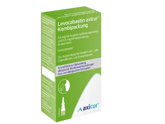 Levocabastin axicur® hilft bei der Behandlung allergiebedingter Beschwerden, die bei Heuschnupfen, Pollen- oder Tierhaarallergien auftreten können. Levocabastin axicur® bieten wir in verschiedenen Darreichungsformen an, als Nasenspray und Augentropfen sowie als Kombination beider. Anwendbar bei allergischem Schnupfen oder einer allergiebedingten Bindehautentzündung. Levocabastin ist ein bewährtes Antihistaminikum für eine sehr schnelle Linderung allergischer Symptome wie Jucken, Rötung und Schwellungen an den Augen oder gegen ständigen Niesreiz und Fließschnupfen.